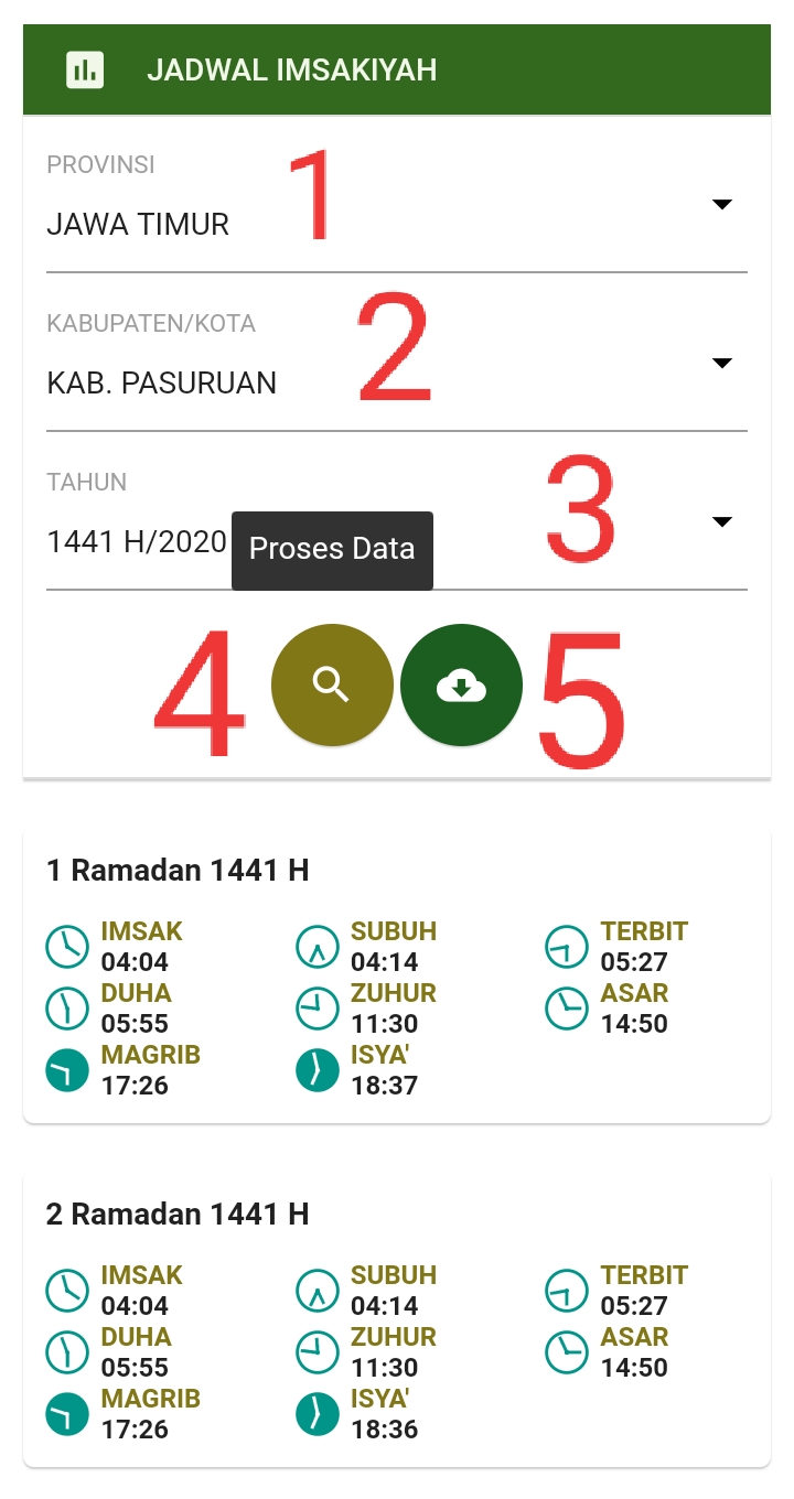 Kedua pilih propinsi, kabupaten dan tahun hijriah/masehi