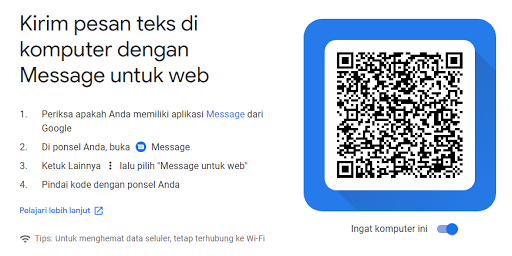1. Buka web https://messages.google.com/web/ sehingga tampak kode QR yang siap di scan