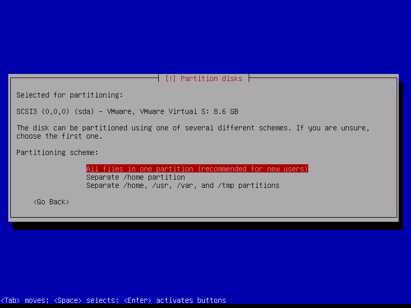 Pada partisi harddisk yang perlu diperhatikan antara lain yaitu apakah kita memiliki partisi windows, jika ya, maka pemilihan metode partisi yang sesuai adalah Manual, sehingga kita bisa melakukan partisi dengan lebih leluasa. Kemudian yang tak kalah penting yaitu memisah partisi /home menjadi partisi yang mandiri. Hal ini perlu dilakukan karena partisi /home digunakan untuk menyimpan semua data user Linux Debian. Untuk yang ini kita bisa memilih metode partisi Separate /home partition.