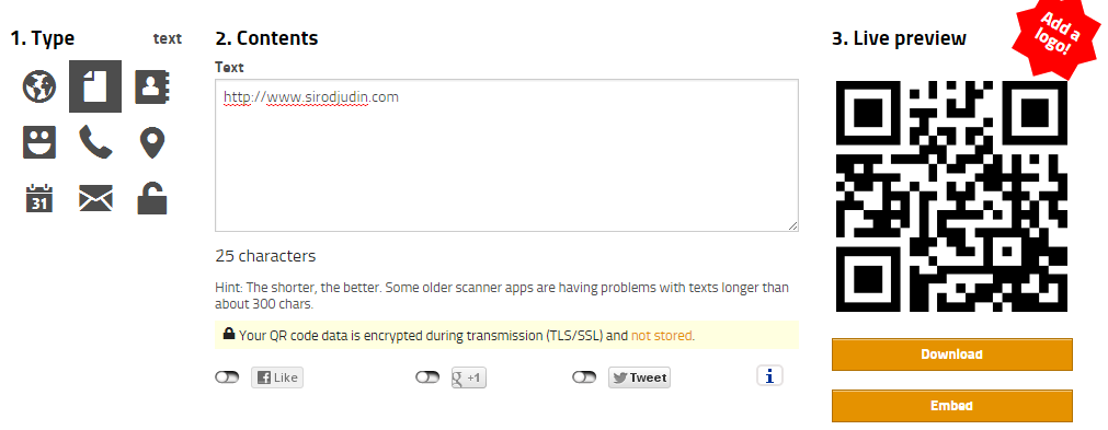 Untuk membuat Kode QR kita sendiri, bisa dilakukan dengan jalan pintas, yakni dengan mengunjungi salah satu situs pembuat QR kode yang bisa kita temukan di google. Salah satunya adalah goqr.me