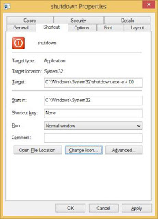 3.Isilah dengan alamat ==> c:windowssystem32shutdown.exe -s -t 00