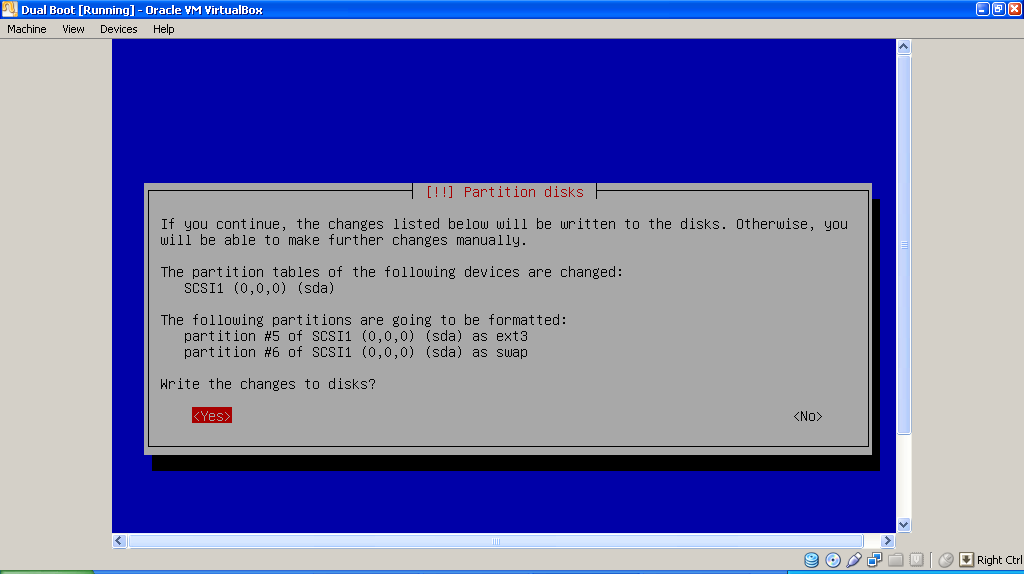 7. Secara otomatis sistem akan memetakan partisi. ntfs merupakan pertanda untuk partisi Windows, sedangkan ext3 dan swap merupakan pertanda untuk partisi Linux.