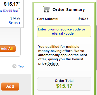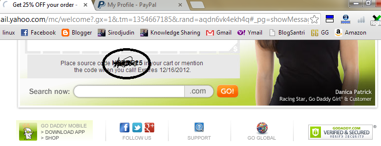 Suatu ketika saya mendapatkan email dari godaddy.com, bahwa domain punya saya akan segera habis masa tayangnya dan bla bla bla. Karena semua isi emailnya adalah bahasa inggris, maka saya pun malas untuk membacanya. Langsung scroll ke bawah, ada informasi dapat kupon belanja. Dipikir-pikir, wah, lumayan juga nih bisa menghemat budget. Tanpa pikir panjang langsung copy-paste kupon ke chart nya godaddy.com trus apply.