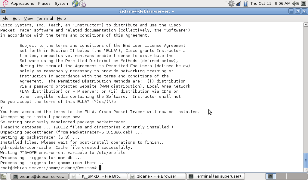 6. Jika ingin menghapus program, ketikkan saja perintah dpkg -r PacketTracer.