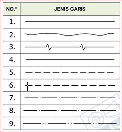 a.     Garis tebal kontinyu dan garis bebas               d.  Garis gores tipis dan garis gores tebal