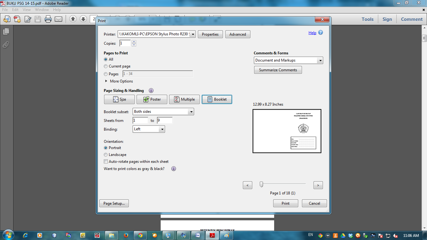 Kali ini saya cuman mau membahas bagaimana cara mencetak buku PSG dengan mode booklet. Mode ini memungkinkan kita bisa mencetak seperti layaknya buku.